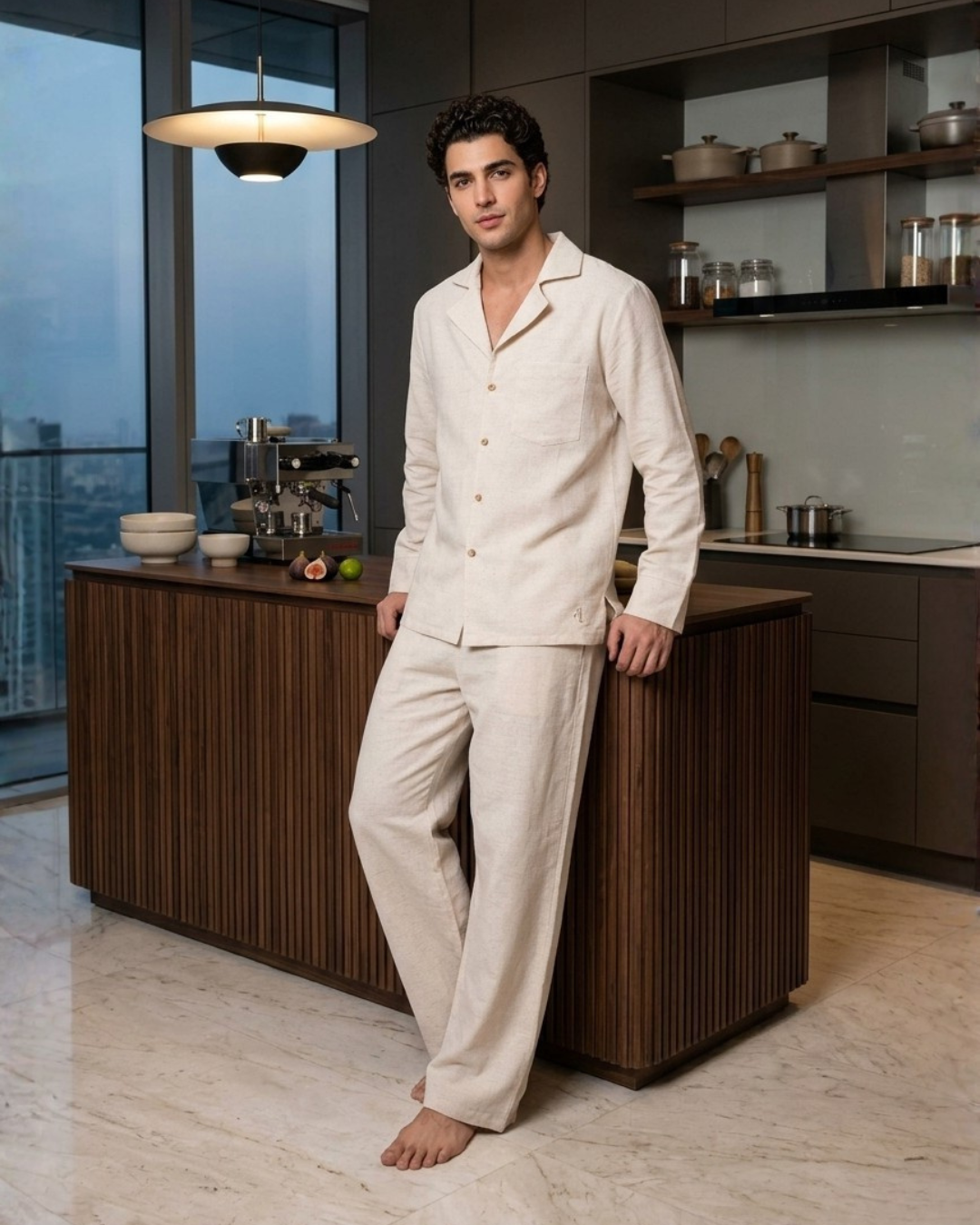 La Camisera Regular Benito nace del encuentro entre la simplicidad y el refinamiento. Confeccionada en una mezcla ligera de algodón y lino, su tejido respira naturalidad y movimiento, ofreciendo una frescura que se adapta con sutileza a cada entorno. Su color avena evoca calma y pureza, reinterpretando la elegancia masculina desde la serenidad. Cada costura celebra el arte de lo esencial: una prenda pensada para acompañar sin imponerse.
