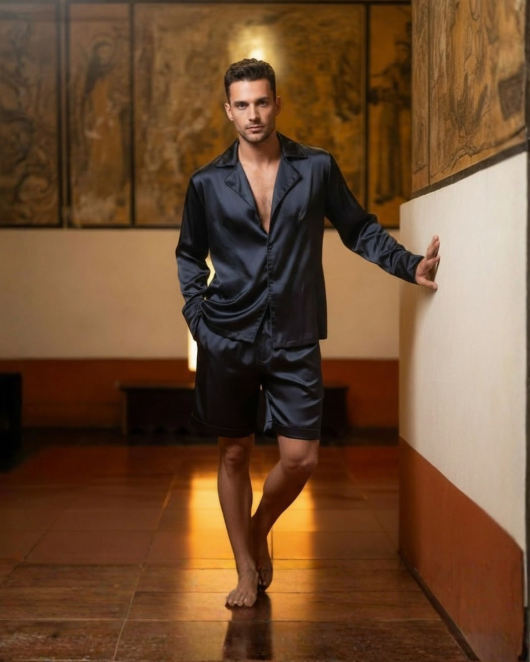 El Short Mid-Rise Emiliano combina ligereza y sofisticación en una silueta pensada para el descanso contemporáneo. Confeccionado en tela charmeuse con un sutil toque de elastano, su textura satinada ofrece frescura y suavidad al contacto con la piel. El talle medio y el corte relajado equilibran confort y estilo, permitiendo libertad de movimiento sin perder estructura. En tono azul profundo, evoca serenidad y discreta elegancia.